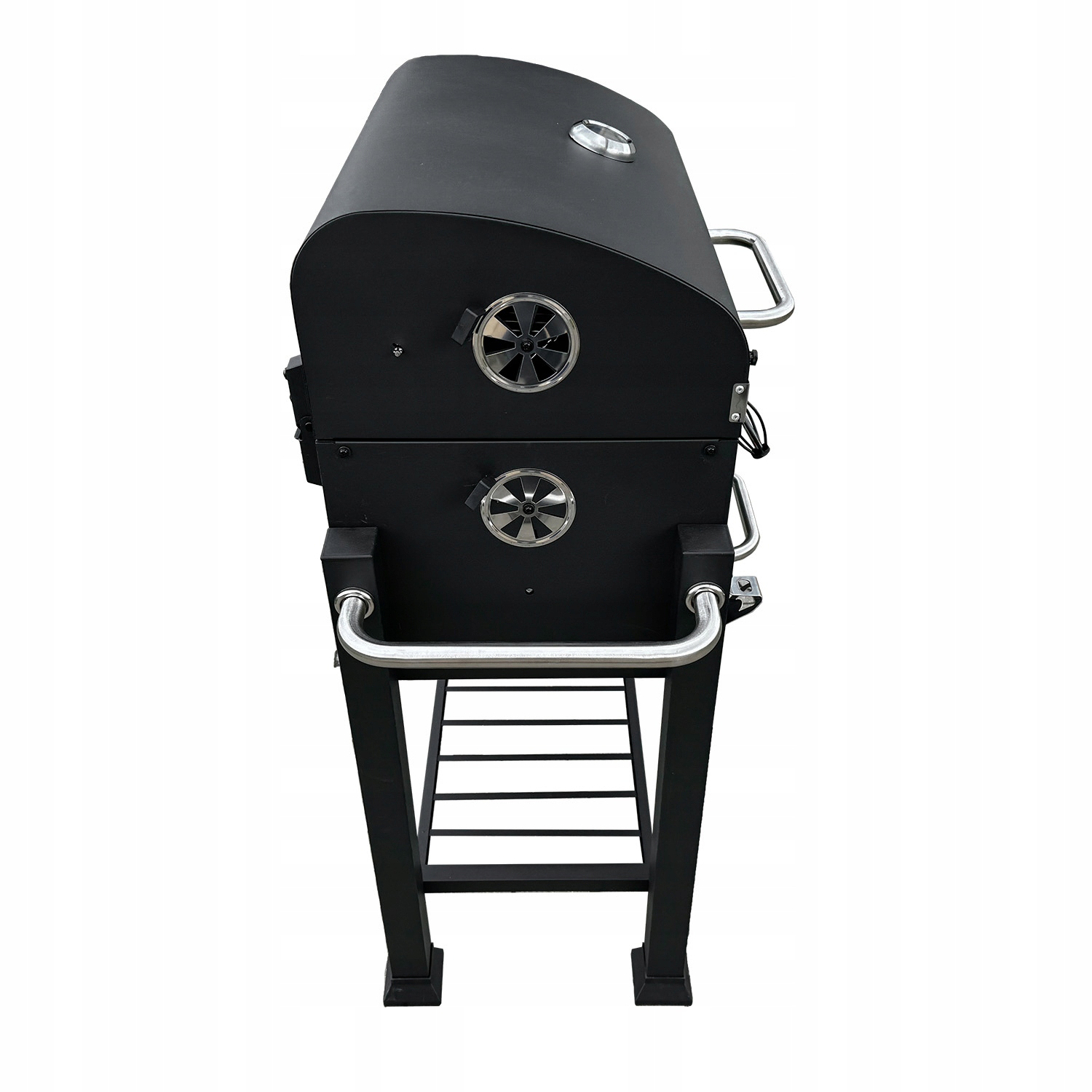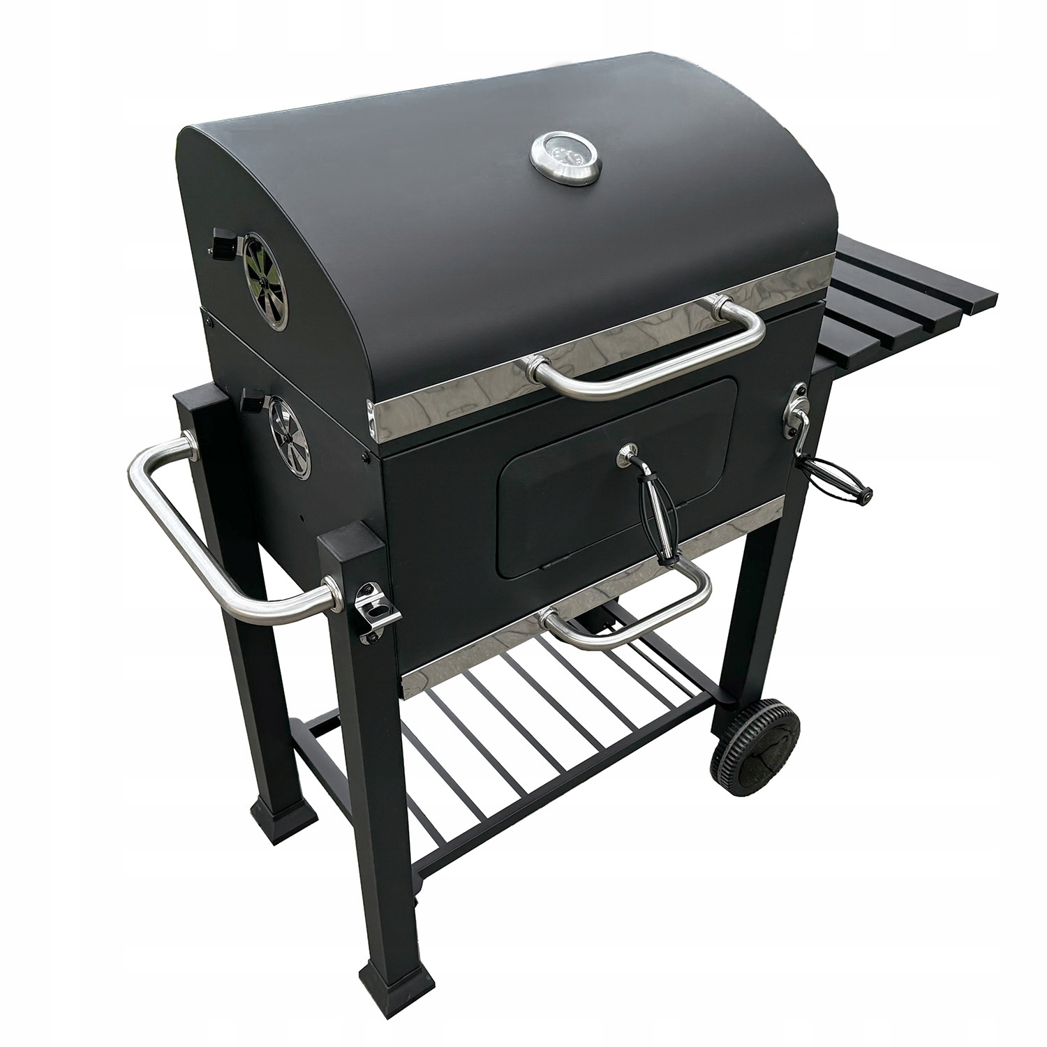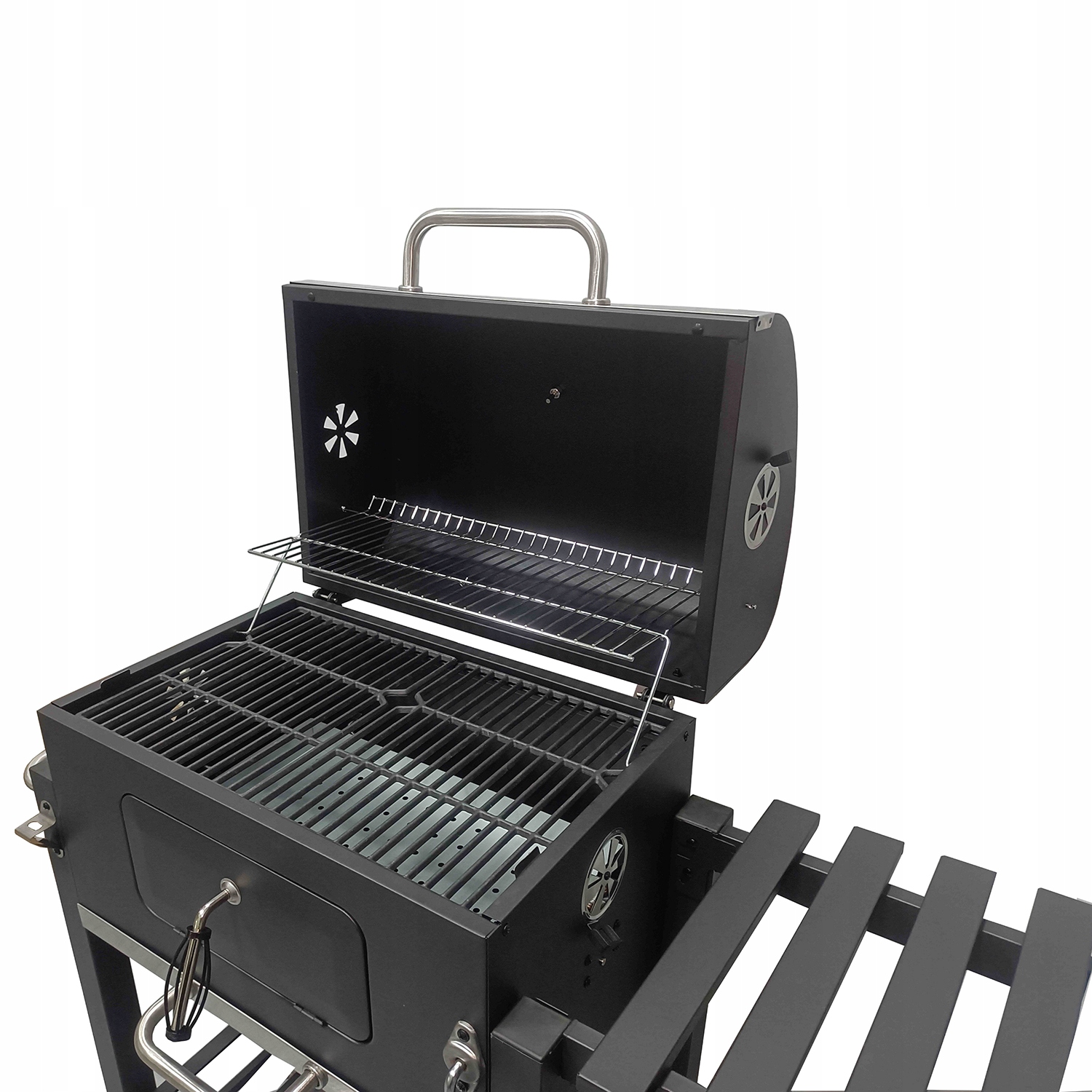 Grill węglowy ogrodowy duży żeliwny ruszt termometr z kółkami pokrywą