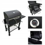 Grill węglowy ogrodowy duży żeliwny ruszt termometr z kółkami i pokrywą