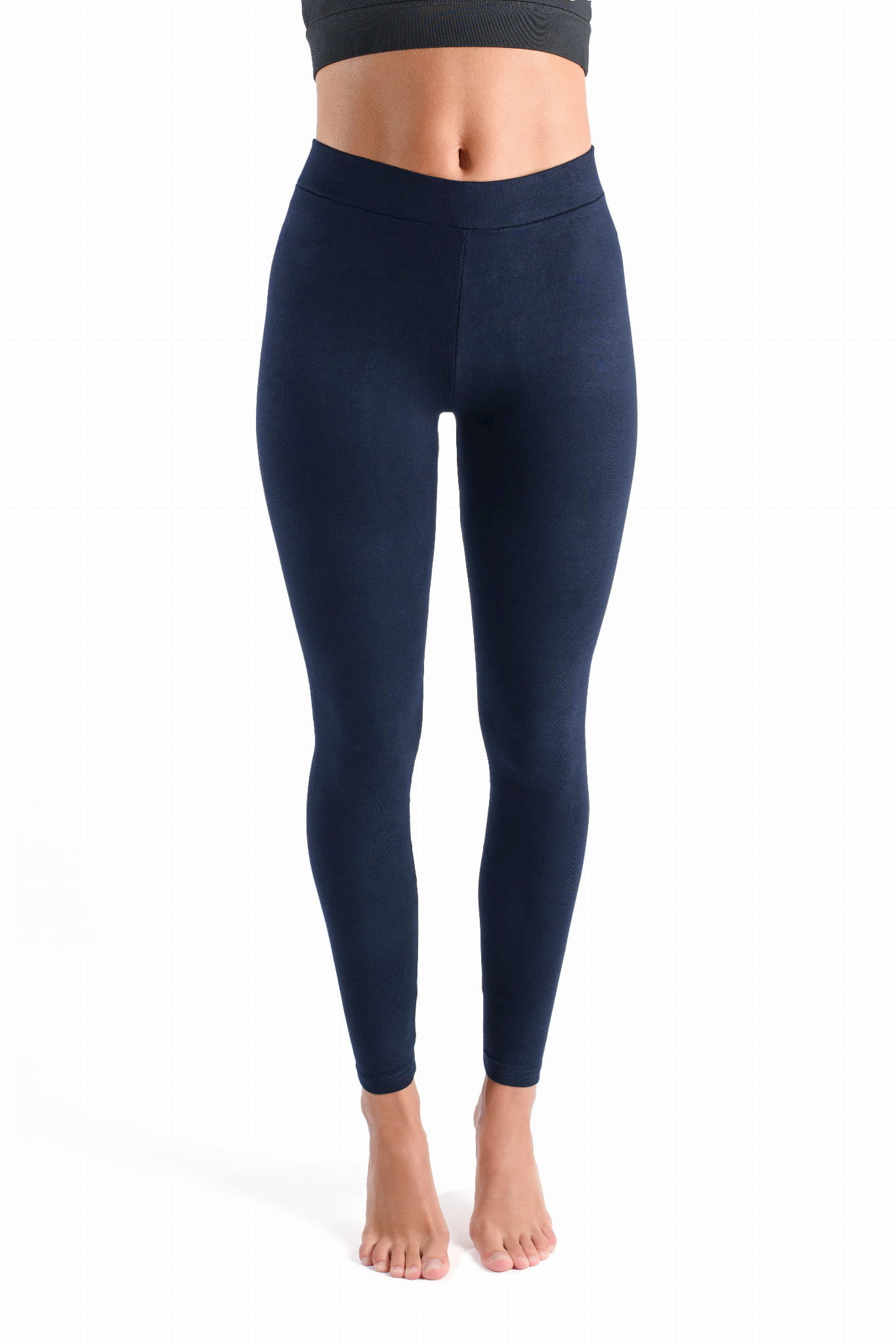 Legginsy damskie długie bawełniane ocieplane z puszkiem – OEKO-TEX niebieskie