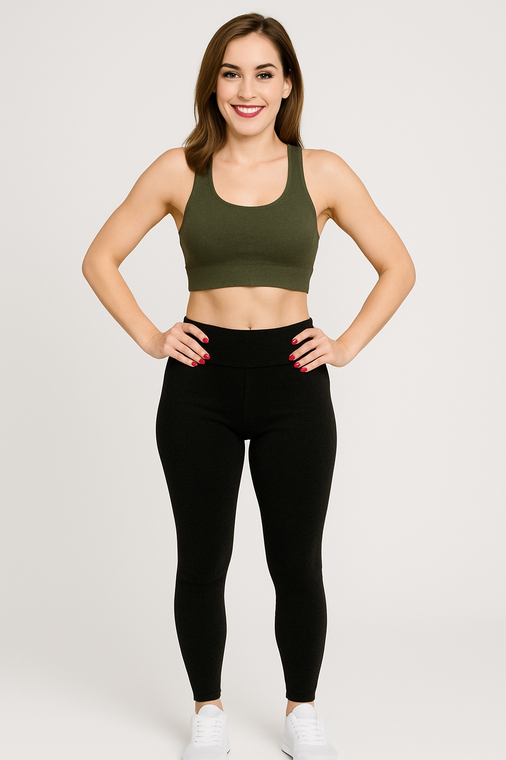 Legginsy damskie z wysokim stanem. Elastyczna gładka dzianina zapewnia efekt płaskiego brzucha. Wygodny szeroki pas. Sprawdzą się do codziennych stylizacji lub podczas uprawiania sportu.