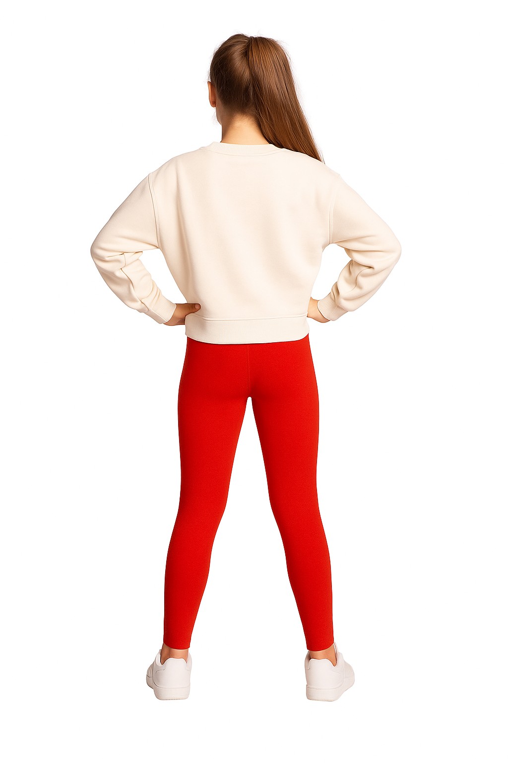 Czerwone legginsy dziewczęce długie – wygodne spodnie z miękkiej dzianiny (95% bawełna, 5% elastan). Elastyczne, dopasowane i komfortowe w noszeniu, idealne do szkoły, zabawy i codziennych stylizacji.