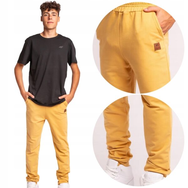 Miękki, elastyczny materiał z domieszką elastanu sprawia, że spodnie idealnie dopasowują się do sylwetki, nie ograniczając ruchów. Elastyczny pas bez sznurka i ściągacze przy nogawkach gwarantują idealne dopasowanie i komfort w każdej sytuacji.